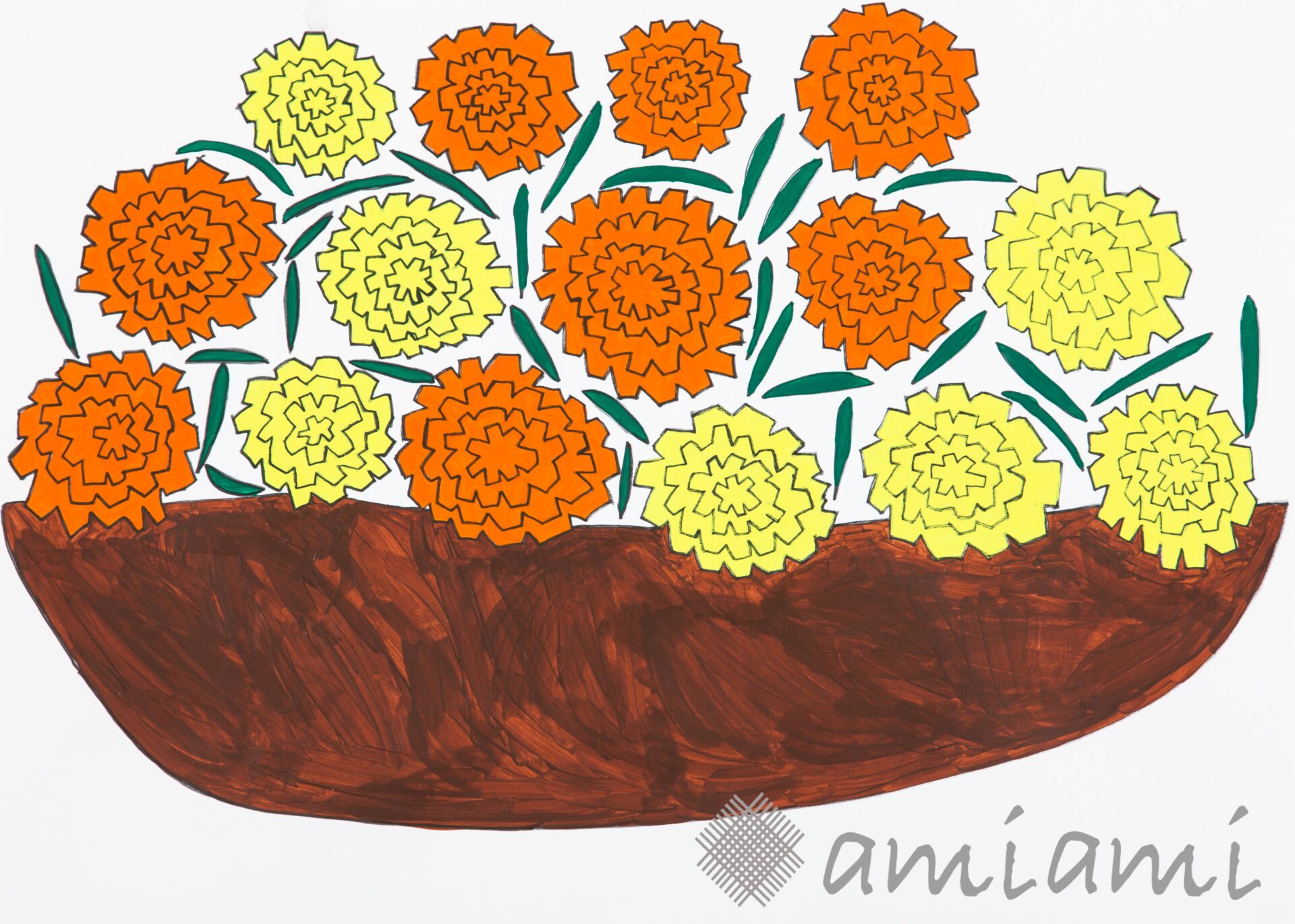 「太陽をいっぱいに浴びた、マリーゴールドたち」
